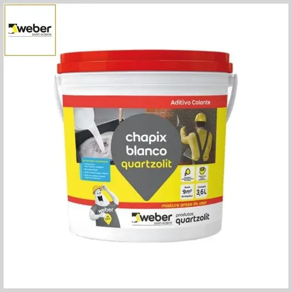 Chapix Quartzolit é um adesivo à base de PVA, de cor branco leitoso, desenvolvido para proporcionar melhor aderência e trabalhabilidade para argamassas e chapiscos cimentícios ao substrato.
