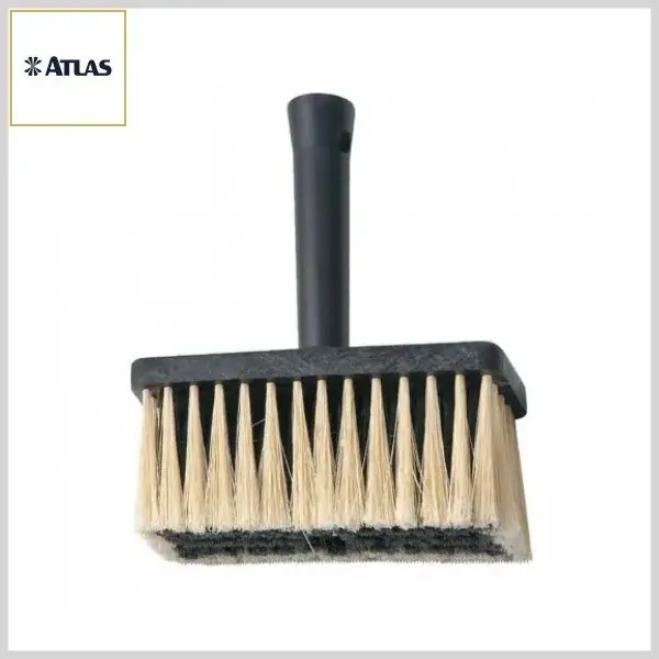 BROXA DE PINTURA ATLAS 800 é produzida em 2 tamanhos, com dimensões de 195x150x56mm e 200x80x85mm (comprimento x largura x altura), com cabo plástico e monofilamento bicolor. O produto é ideal para o uso com aplicação de pinturas com cal em superfícies rústicas e para limpezas em geral.