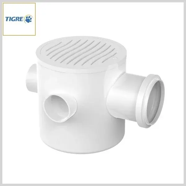 Caixa Sifonada (3 Entradas) 100mm c/Pta.Grelha+Grelha Redonda Branca - Diâmetro: 100 x 100(Altura) x 50 mm - Tigre - Ref:N000000011989