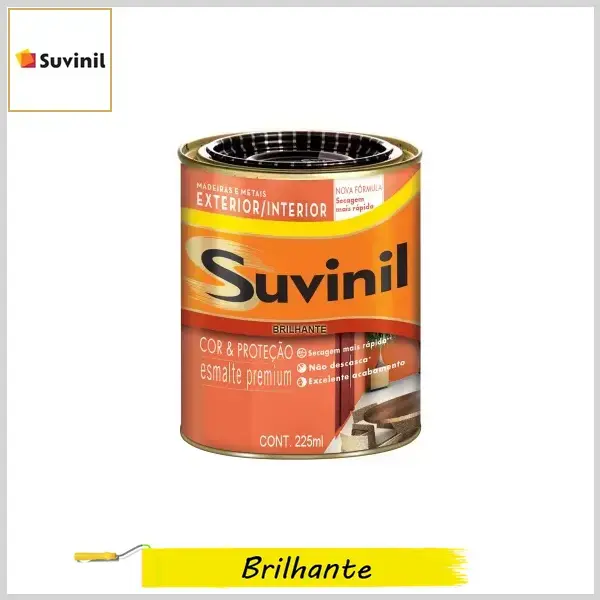Esmalte Sintético Suvinil Cor & Proteção, é um produto de fácil aplicação com características de alta resistência às intempéries com acabamentos acetinado, brilhante ou fosco. Possui ótima secagem, excelente acabamento e sua fórmula siliconada permite uma menor aderência de sujeira facilitando a limpeza. A segunda demão pode ser aplicada após 45 minutos, mesmo que a primeira ainda não esteja seca.