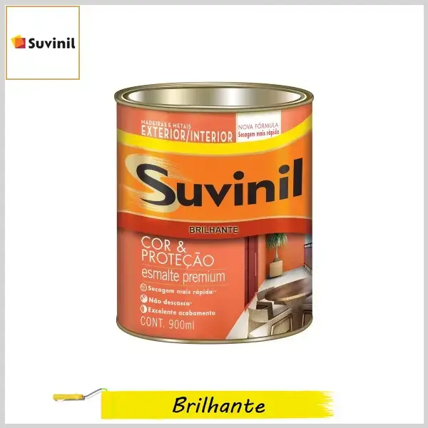 Esmalte Sintético Suvinil Cor & Proteção, é um produto de fácil aplicação com características de alta resistência às intempéries com acabamentos acetinado, brilhante ou fosco. Possui ótima secagem, excelente acabamento e sua fórmula siliconada permite uma menor aderência de sujeira facilitando a limpeza. A segunda demão pode ser aplicada após 45 minutos, mesmo que a primeira ainda não esteja seca.