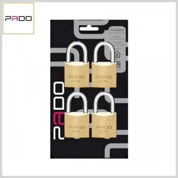 Kit 4 Cadeados Tradicionais 25mm, c/4 Chaves Iguais - Blister c/4 peças - Pado - Ref:N000000001681