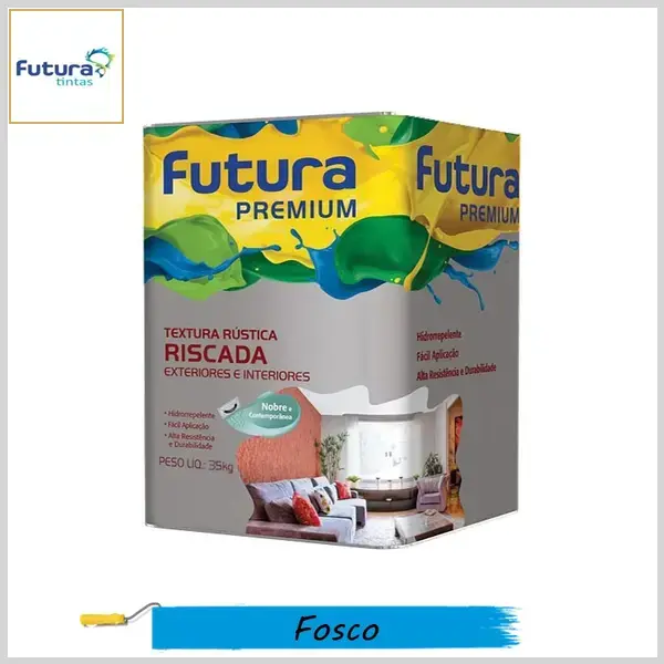 A Textura Acrílica Rústica Riscada Futura Premium possui como característica um acabamento contemporâneo e nobre, permitindo disfarçar pequenas imperfeições em superfícies internas e externas de alvenaria, massa corrida, massa acrílica, gesso e ficrocimento. Contém partículas mais grossas de minerais especiais para obter-se o efeito riscado, além de um exclusivo componente hidrorrepelente que protege as superfícies e impede a penetração de água, aumentando a sua resistência ao intemperismo. Na cor branca e acabamento fosco, está também disponível em diversas cores prontas e no Sistema Magia das Cores com mais de 2000 tonalidades.