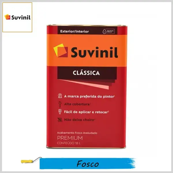 SUVINIL CLÁSSICA é uma tinta especialmente desenvolvida com uma fórmula que garante 2 vezes mais resistência e 40% mais rendimento, além de ser sem cheiro e oferecer facilidade na aplicação.